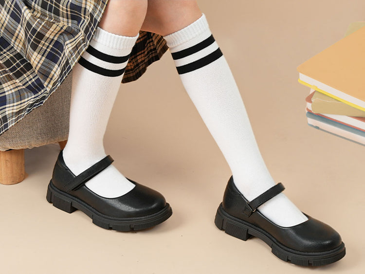Girls' Mary Jane flats, equipped with a non-slip TPR outsole and soft synthetic leather upper and cushioned footbed, these Mary Janes are as comfortable as they are cute, ideal for all-day wear.