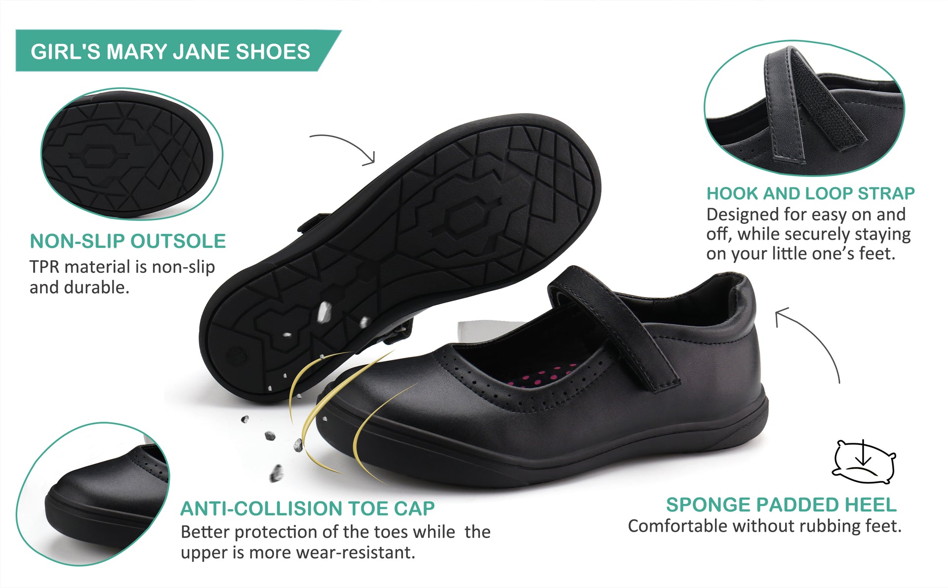 These girls shoes are designed for long days at school, offering all-day comfort with cushioned insoles and synthetic materials.